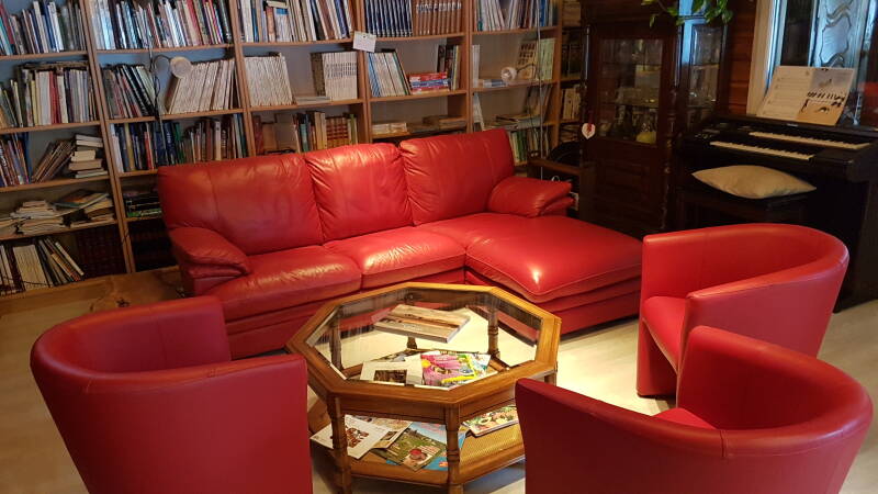 Possiblité d'enlever le babyfoot, la table et les chaises... de rajouter des tables rectangulaires pour écrire...
